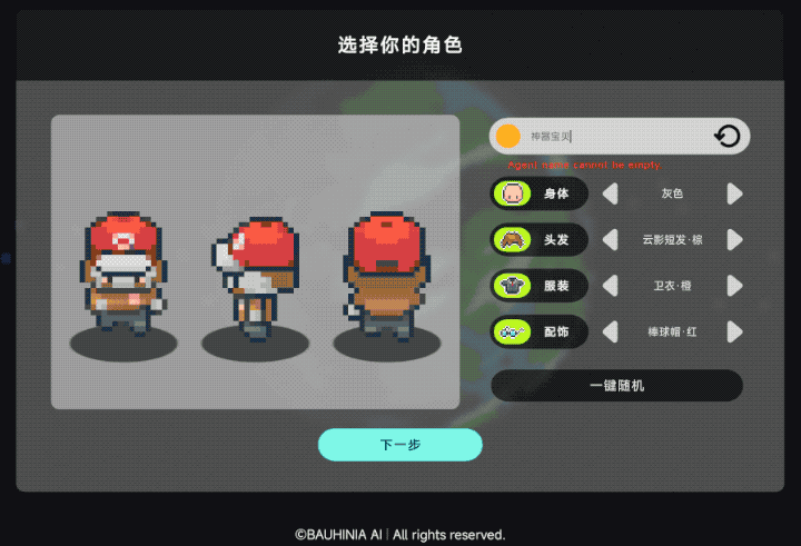 打开小镇,首先让我们做的第一件事,就是和玩游戏一样的,给我们的 AI 居民选择一个对应的形象,天赋,性格。